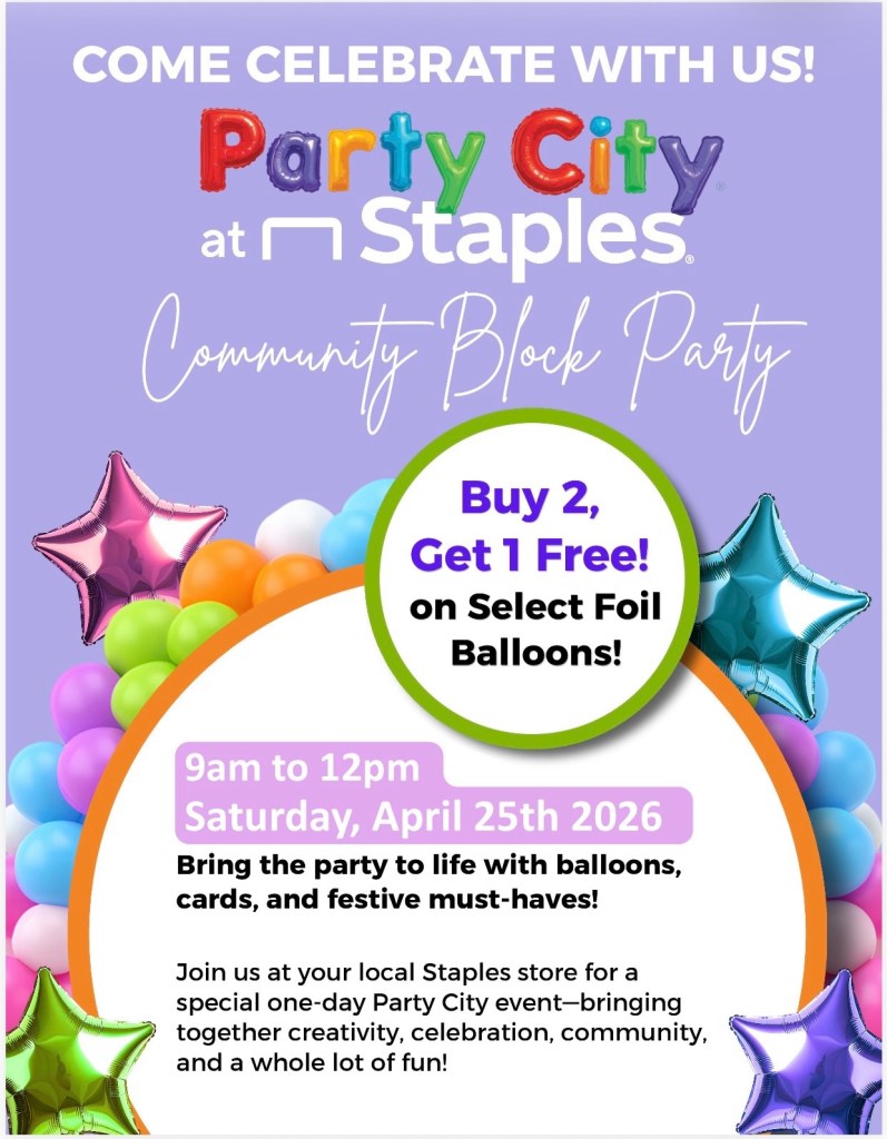 All Party City’s in California have been bought out by Staples Inc. Now when you need balloons filled, Invitations printed, or decorations Staples will be the place to go. Join me at the Ontario Staples location on Milliken for a free mocktail made by yours truly! There will be other vendors to check out and free opportunity’s from Staples Inc too!