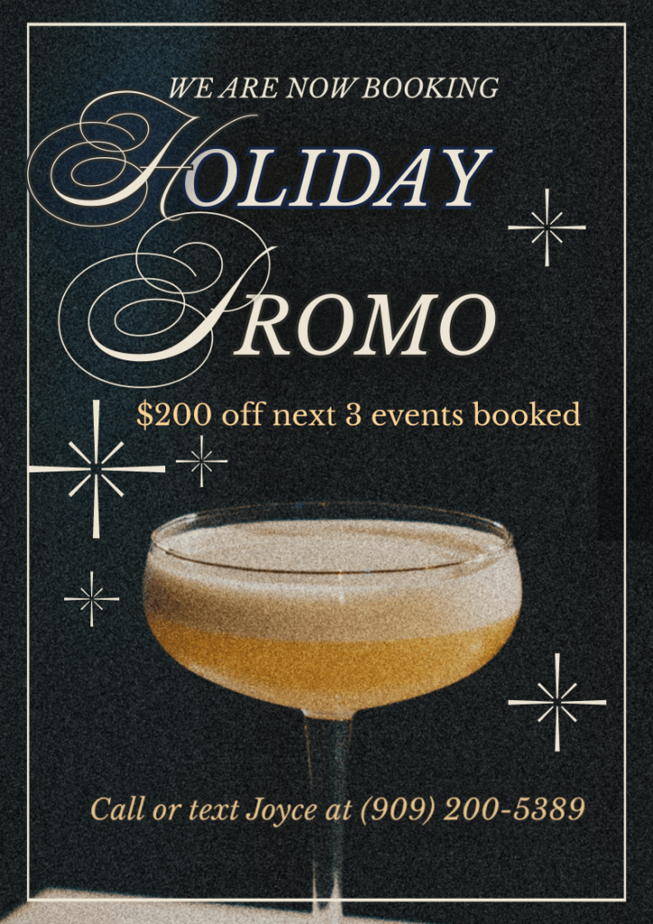 With over five years of experience as a certified bartender in a variety of restaurants and bars, Joyce has perfected her craft. After earning her food handler’s and alcohol service certifications, she realized her true calling: bringing her vibrant energy and cocktail expertise to personal events and parties.
